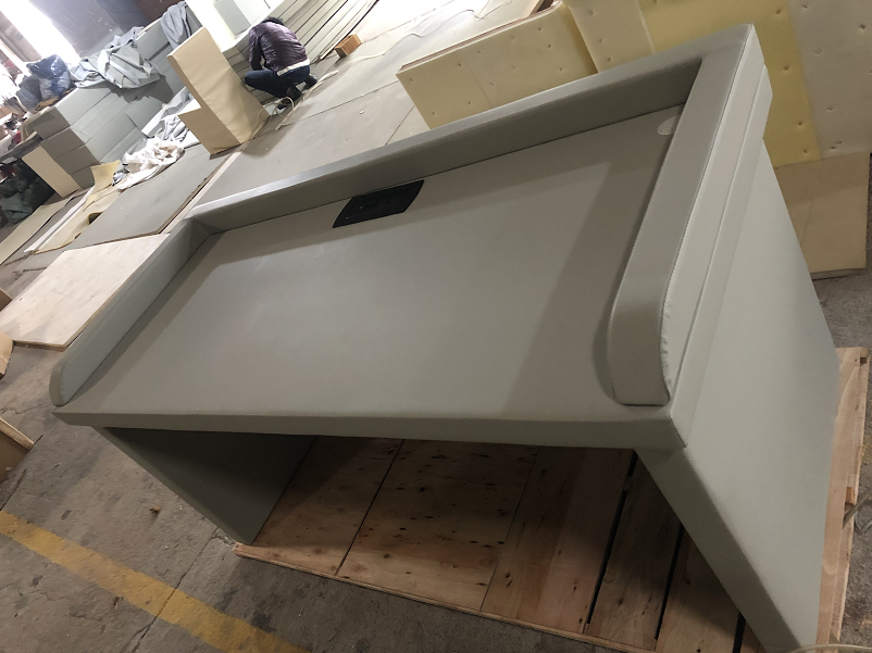 防撞軟包是一種談話室墻面加固穩定結構,輔材的設計為卡扣固定部件,常規規格為一米二與兩米四,厚度為一七毫米,二零毫米,二五毫米,三零毫米,顏色可選擇為淺灰和米黃,采用多層復合工藝,不使用復合膠壓制,該方法主要是通過包覆機器系統化在極大壓力與高溫下將預先制備好的納米棉基材側與阻燃皮革層層復合成型,再經特殊處理和適當干燥而獲得制品,該方法制造的談話室防撞軟包在實際測試中,談話室室內甲醛濃度小于0.05mg每平方米,而且無刺激性氣味產生。