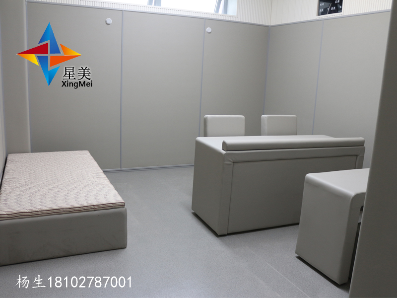 在談話室,留置室等內部設有獨立衛生間的條件下。為防止出現意外事件發生,洗手臺處于關鍵位置,防撞設施要做到位,首先采用環保E0級環保的硅膠防撞洗手臺,出水口按鍵位置都要進行硅膠覆蓋。
