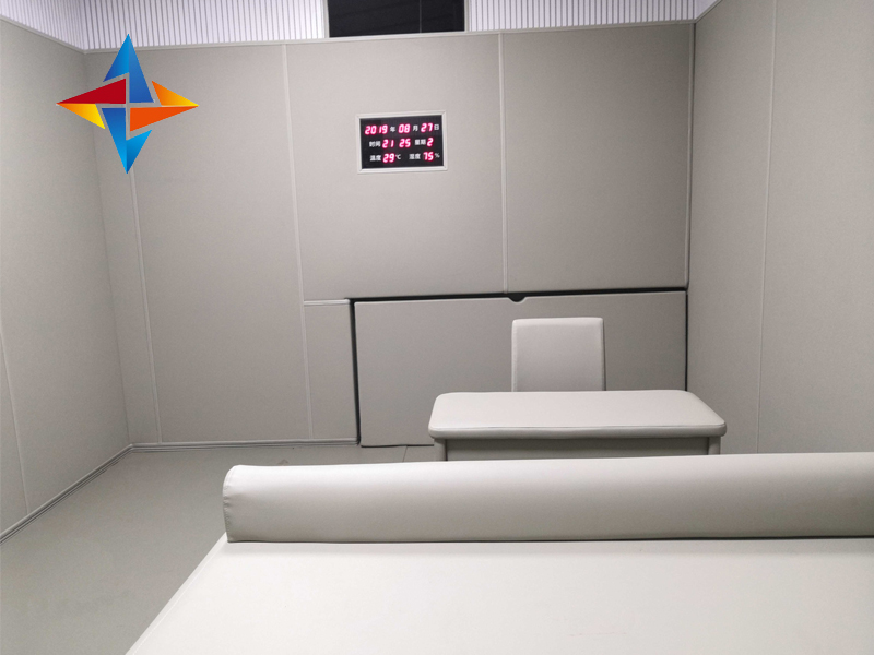 審訊室防撞軟包運用廣泛:無論是室內還是表里都均可運用。不局限于任何的物質和場所;軟包皮革選用順滑、光感和觸感一流的皮質。防水防塵防潮防霉。酸堿平衡。沒有靜電、防蛀、 衛生、耐腐蝕、保養方便、簡單便利。環保:留置室防撞軟包產品無 毒無味、環保 健康、環保級別達到國 家的E1;不摻和有害物質,無石灰、石棉、密度板等。甲醛達到國 家的監控中心室內甲醛的釋放量。可隨意修剪,裝修便利、可剪、可裁、可機刨。施工便利極快。審訊室防撞軟包阻燃、吸音、防撞、浸泡力強。軟包保溫性平衡、不易開撕、撕裂和皮革泛毛等特點。彈力強,不會凹塌。任何指標都通過國 家環保、權威檢測,是非常實用、合格的產品。阻燃級別B1;環保級別E1級。