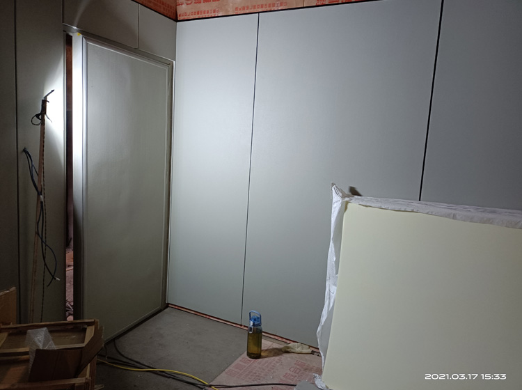 1.先做地面和吊頂,地面可用塑膠地板,吊頂可參考用玻纖天花板(A級(jí)防火,吸音材料);墻面可使用平整光潔可粘木工板(一般可用9mm)作為底板,一般室內(nèi)的墻有灰塵或者不夠平整,我們建議是打一層木工底板,中纖板,普通版都可以,當(dāng)?shù)亟ú氖袌?chǎng)就可以解決。