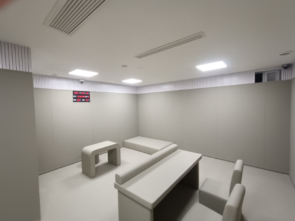 (1)為防止因被審訊(訊問)人因發生碰撞而造成意外,審訊臺審訊椅都要進行軟包或圓角處理,不能有尖銳突出角。