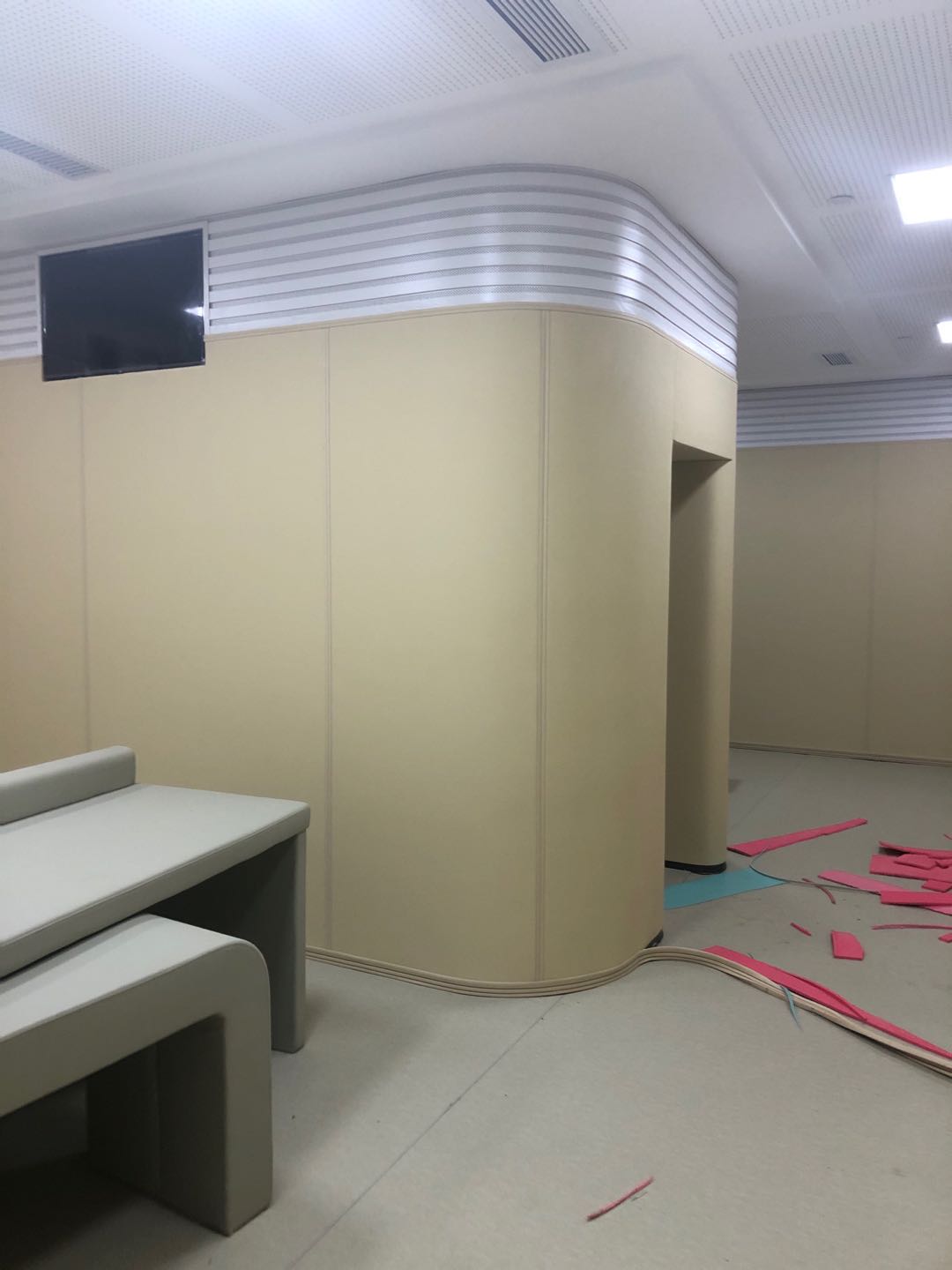 詢問室防撞軟包室內墻面建設方案一般分為兩個部分,一是2.4米以下的墻面安裝防撞軟包墻板,達到防撞效果;二是2.4米以上的墻面則安裝木質吸音板,詢問室墻面防撞吸音墻板主要的功能是防撞和吸音,在一些特定的場所就會使用到防撞吸音板。
