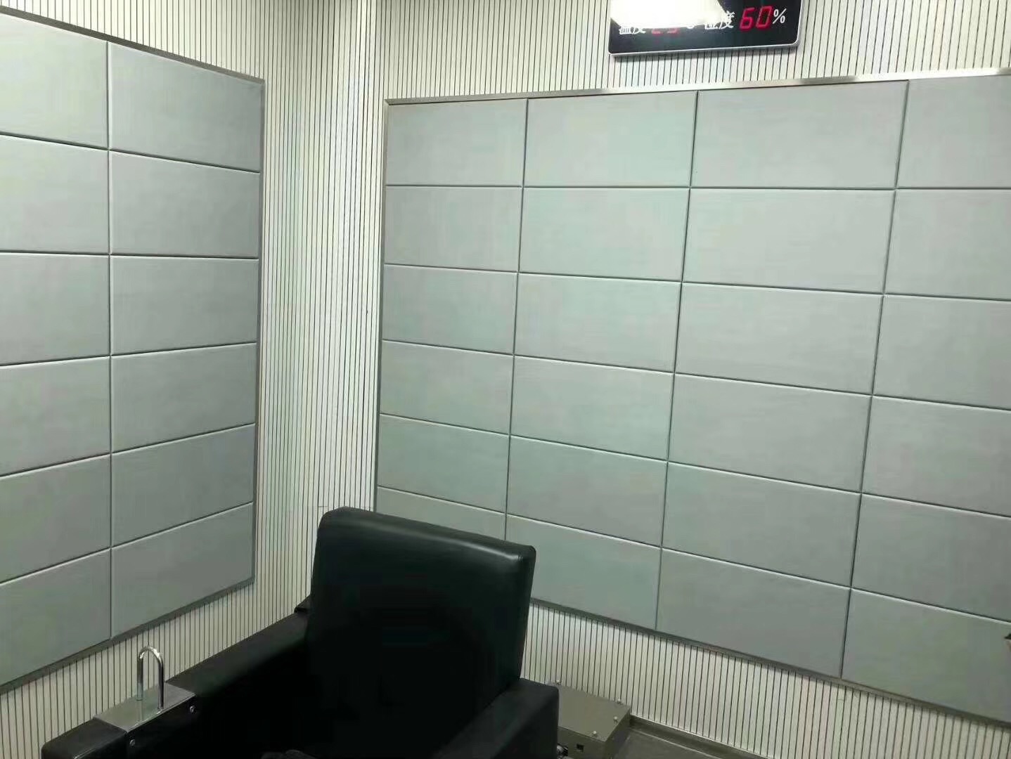 1、產品結構——采用阻燃樹脂邊框內放置防火A級不燃的特制吸聲棉,外包防火處理后阻燃B1級吸聲布藝或皮革等制成(布,皮革防火處理后可達防火GB8624 1997 B1級同GB8624 2006 C級要求);