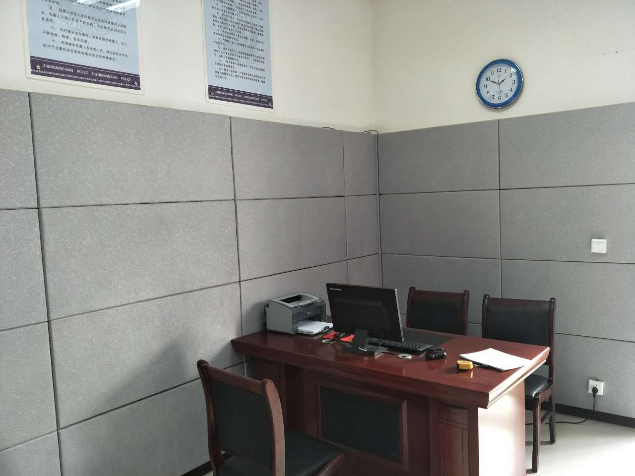 防撞軟包的芯材是A級防火歐文斯科寧棉,飾面是人造皮革或者布藝,產品通過檢測達到環保E0/E1級,阻燃B1級,是辦案中心對墻面進行軟化處理的最好材料選擇。