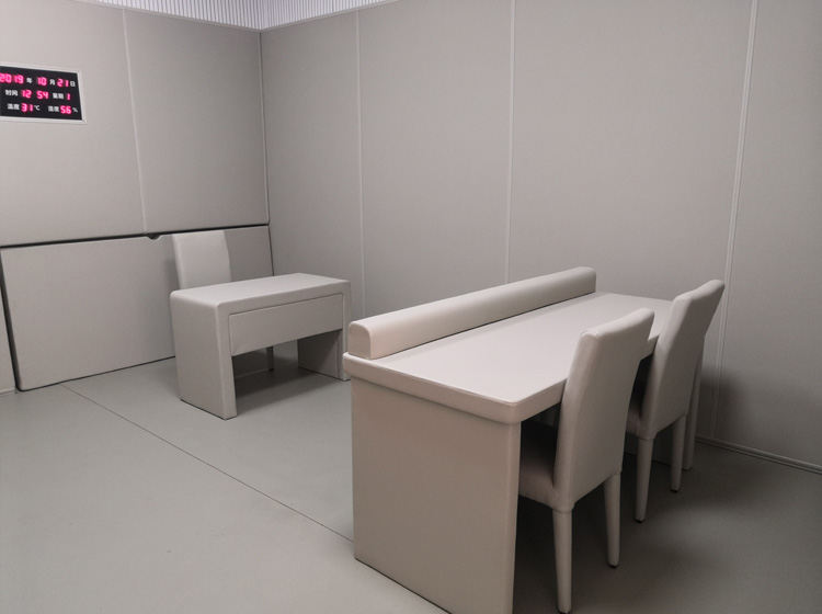 紀檢委場所可根據自身的要求定位不同,對審訊室、談話室、走讀室、訊問室進行有區別的內部建設。一般標準功能齊全的談話室,在配備上應該具備盥洗室、留宿設備、談話空間,可以完成被談話人的談話室、過夜、衛生解決需求。 一般來說談話室面積不低于30平米-50平米辦案場所。