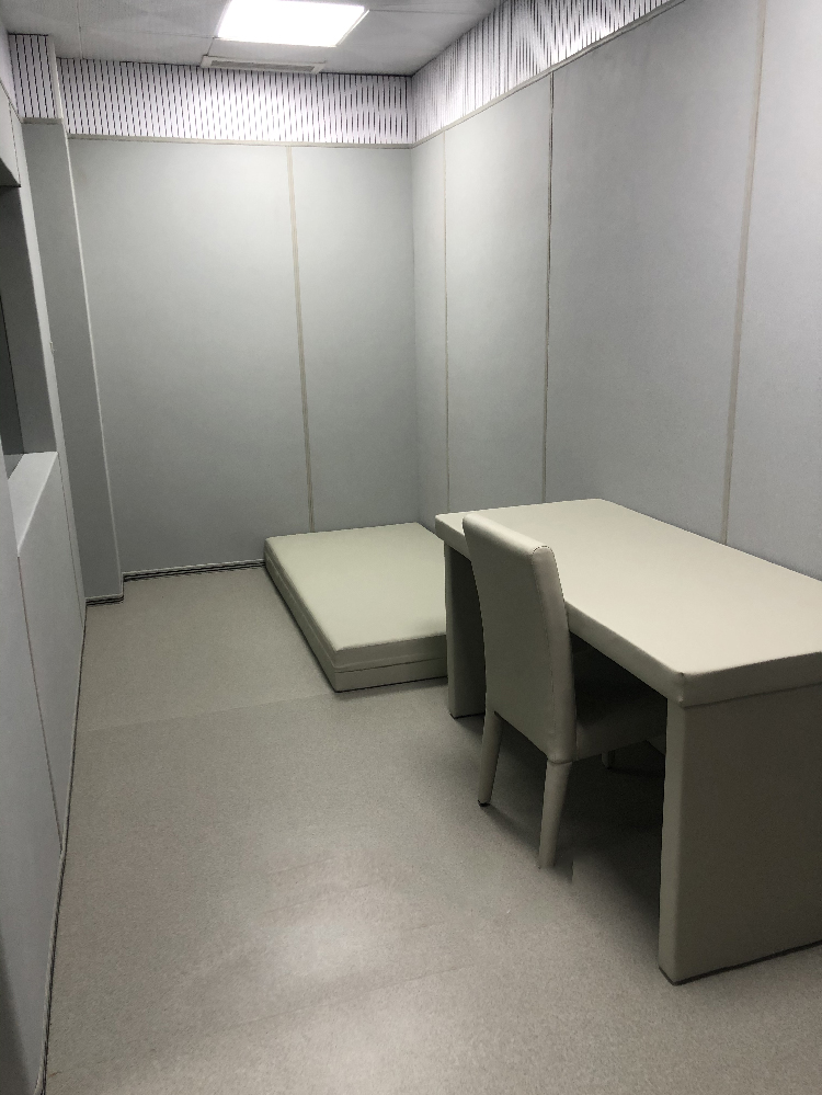 談話室墻面軟包建設方案一般分為兩個部分,一是2.4米以下的墻面安裝防撞軟包墻板,達到防撞效果;二是2.4米以上的墻面則安裝木質吸音板,談話室墻面防撞吸音墻板主要的功能是防撞和吸音,在一些特定的場所就會使用到防撞吸音板。談話室墻面軟包建設方案同樣適用于:墻面軟包同樣適用于、談話室、拘留所、監獄、看守所、紀檢委、檢察院、法院、反貪局、反恐局、訊問室、詢問室、聽證室、醒酒室、辨認室、調解室、賓館酒店養老院、醫院、精神病院等要求嚴格墻面軟性防撞材料和吸音材料。