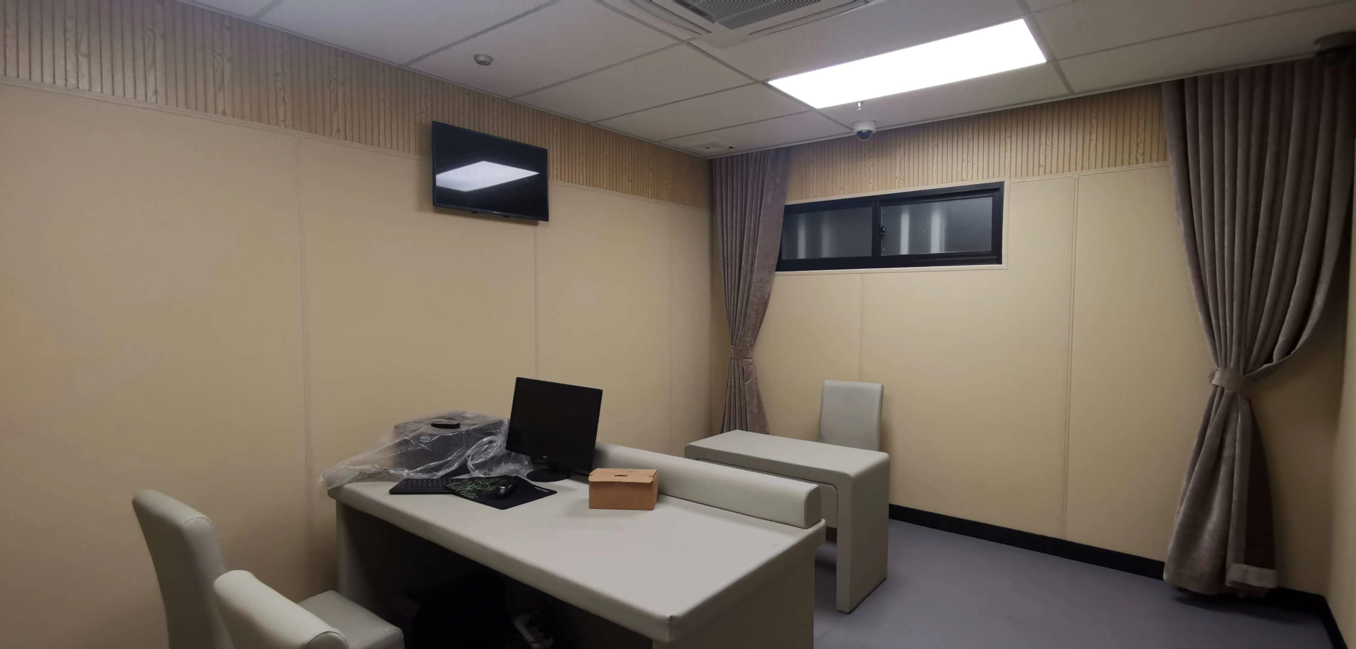 在紀委辦公辦案地區(qū)的紀檢委墻面建設(shè)防撞軟包時,施工前需清理墻面,以保證其堅固、平整、潔凈,無油膩、蠟、塵埃、脫模劑等以及其它碎屑物質(zhì),有的審訊室室內(nèi)裝修完的房子會出現(xiàn)滲水漏水的現(xiàn)象,造成墻壁發(fā)霉,乃至掉落,屋里地板受潮,所以墻面處理是防水施工的關(guān)鍵,如有孔隙、裂縫等缺陷的,預(yù)先用水泥砂漿修補抹平。
