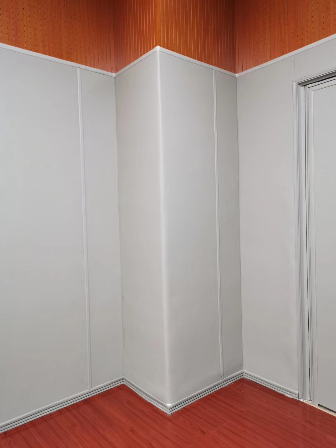 3.施工后,查看軟包墻板邊緣是否有縫隙,如縫隙較大可補膠處理,留置室四周陰陽角施工在軟包背面基材開直角槽,小木條加F30射釘固定墻板,待拆下無脫落現象即可用硅膠中線條封邊。
