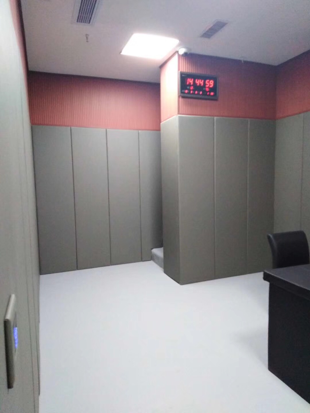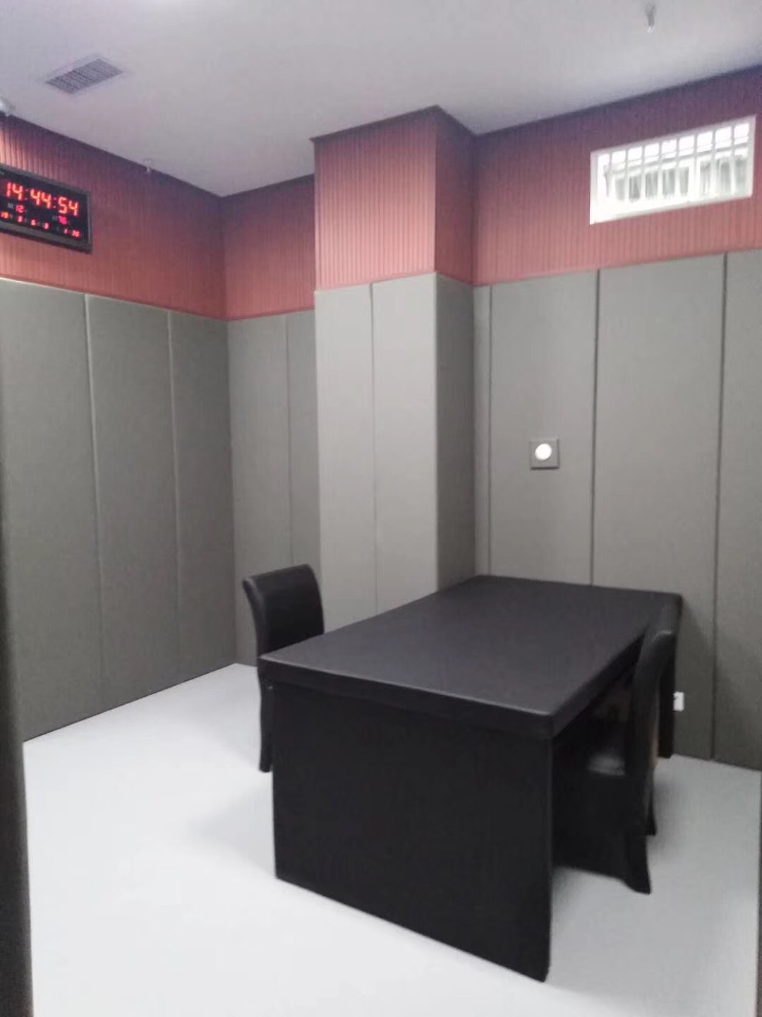隨著社會的發展人們的需求,人身安全與秘密極其重要,審訊室在詢問犯人時防止外面的人聽到,也防止犯人自殺及自殘自傷的行為,帶來的不必要的麻煩,采用防撞材料體現對于犯人的人愛護,詢問隱私的一種保護(隔音,防止聲音外傳),也防止噪音給審訊帶來的干擾。